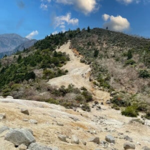 下りは、基本的には「裏道コース」で下山しますが、希望者はロープウエイでの下山も可とします。その場合、ロープウエイ山頂駅での解散とし、自己責任において駐車場まで移動となります。また、登頂時間の遅れにより全員ロープウエイで下山する場合もありますのでご了承ください。
