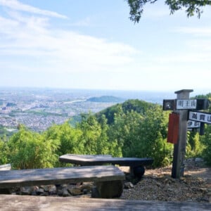 天気がよければ山頂からは360度のさえぎるものがない展望に恵まれ、北アルプスの山々はもちろん、諏訪湖や八ヶ岳連峰を望み、遠く南アルプスや富士山まで見渡すことができます。